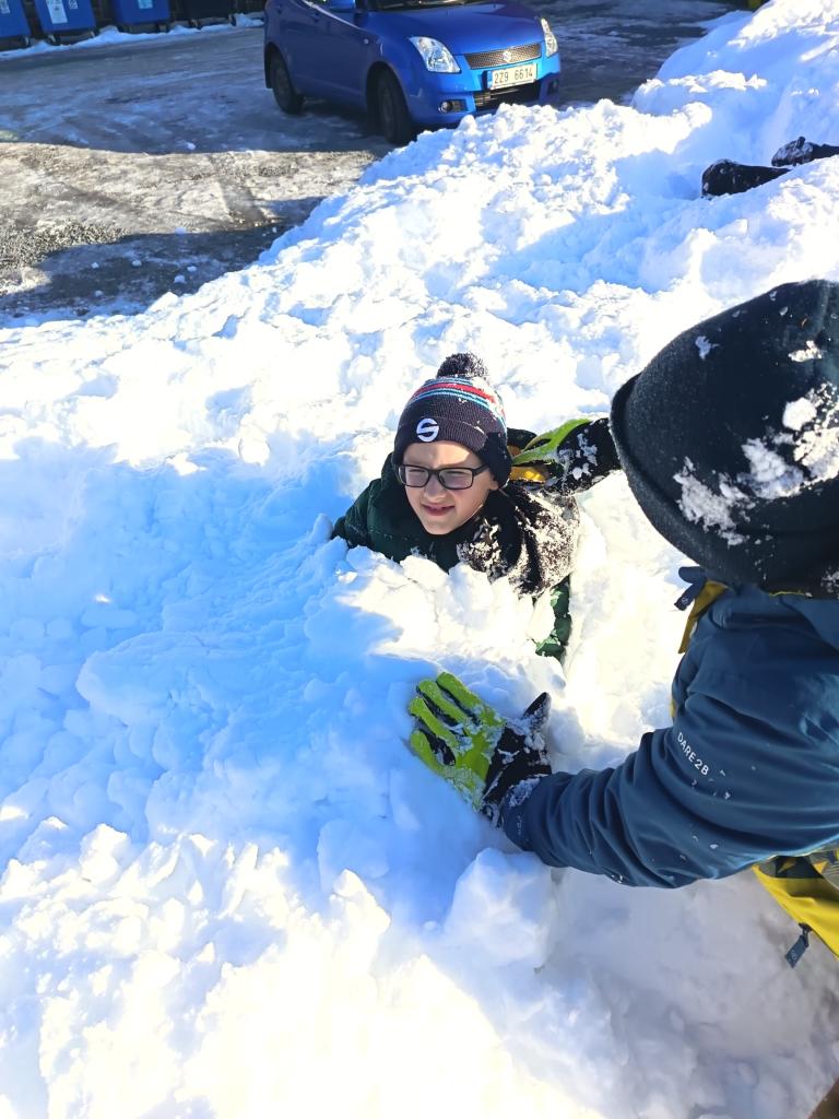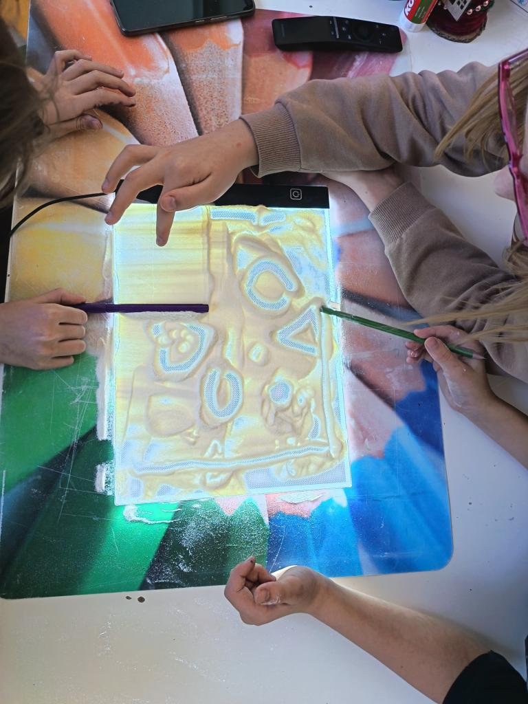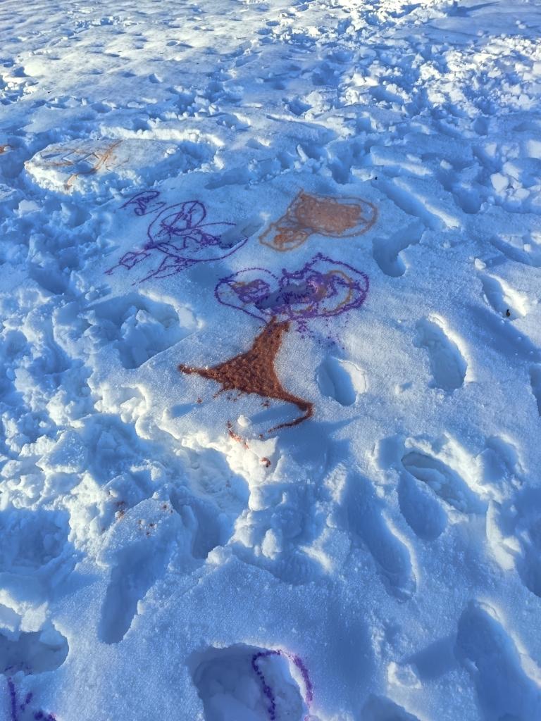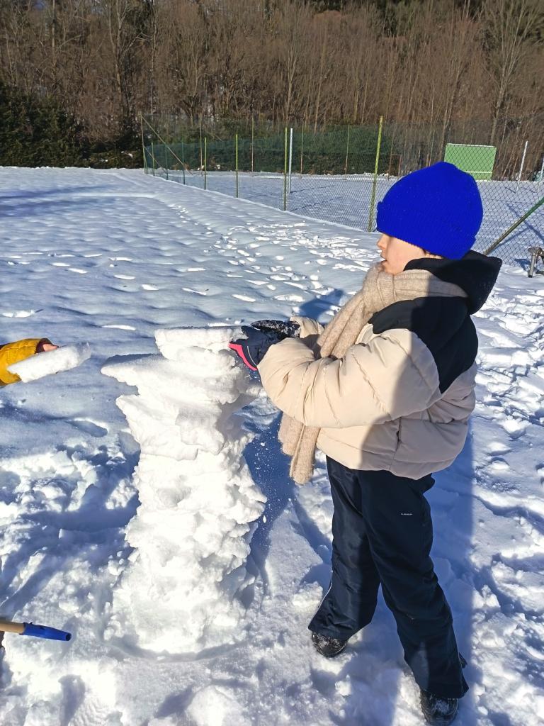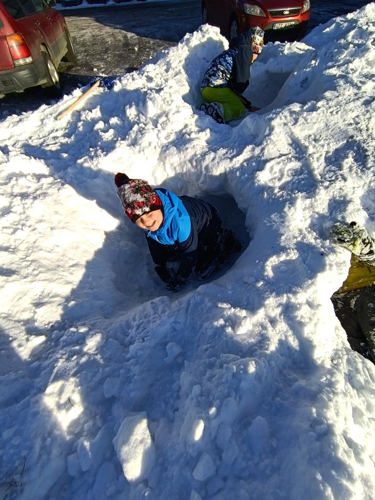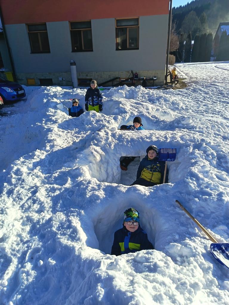 Pondělí jsme začali ,,zimní hrou". Kreslili jsme pískem a moukou na světelnou tabulku. Nechyběl ani pobyt venku a stavba bunkru. Jak venku, tak i uvnitř.