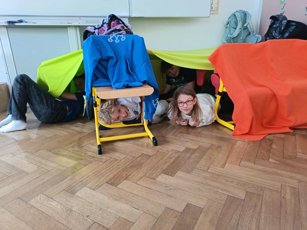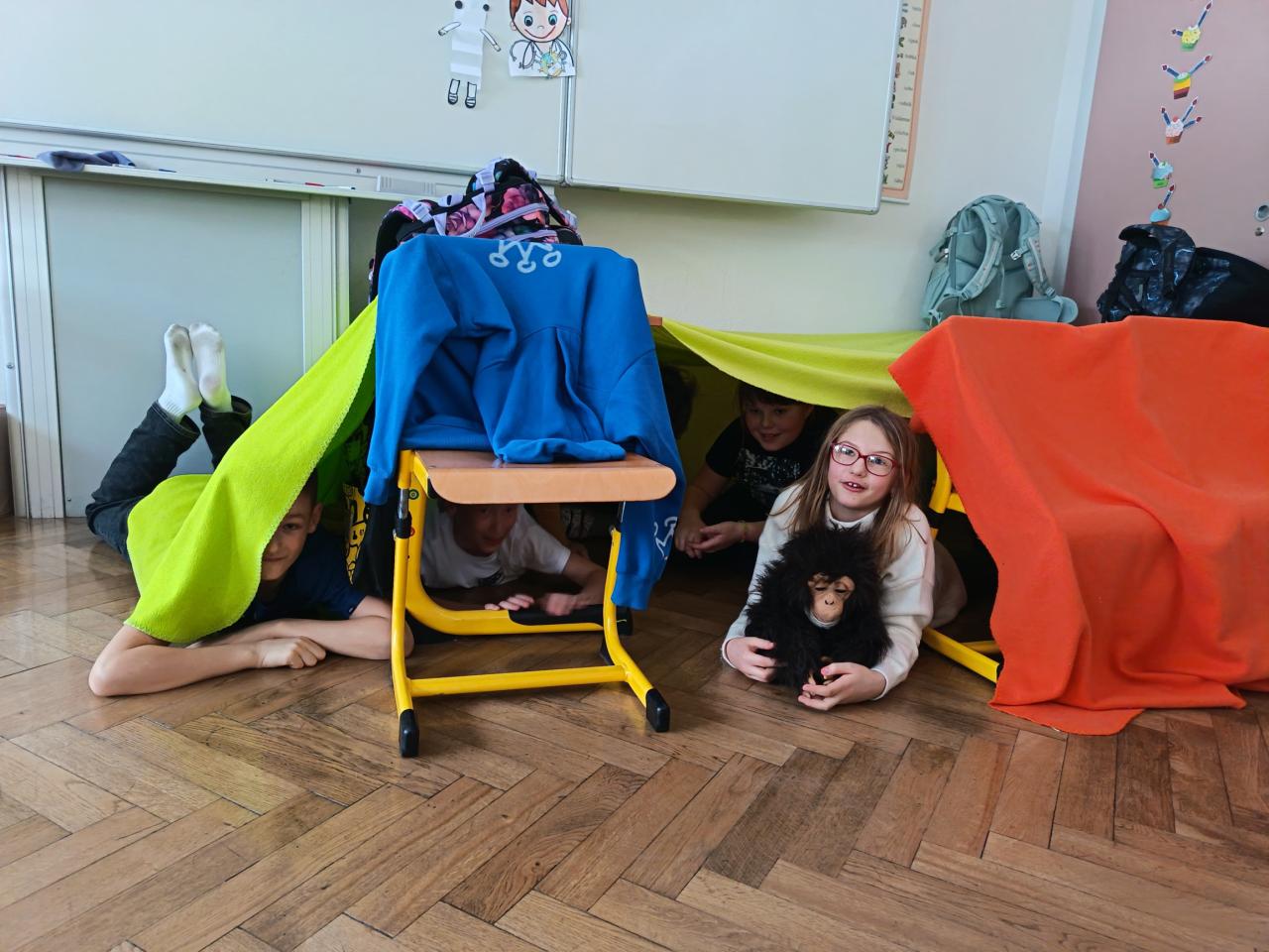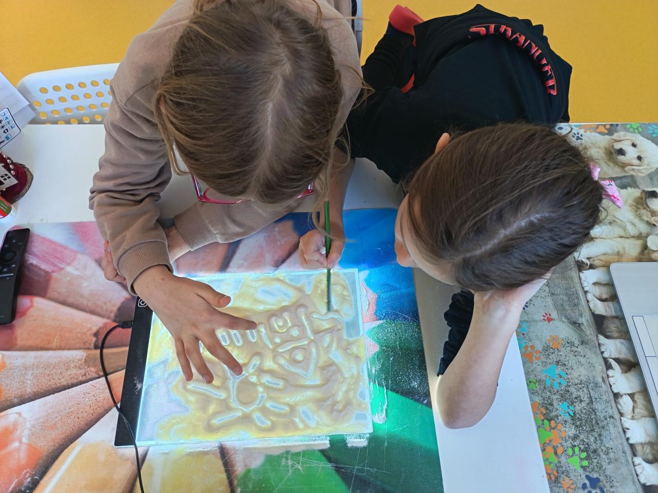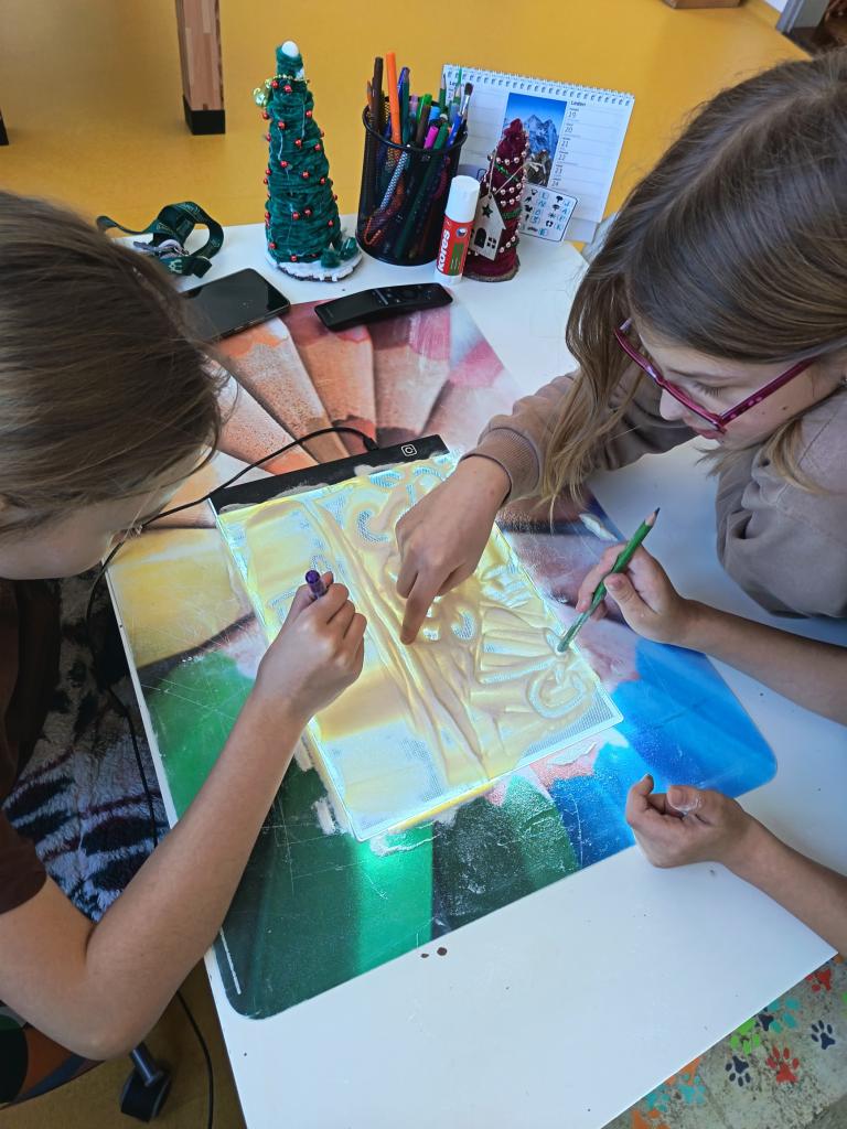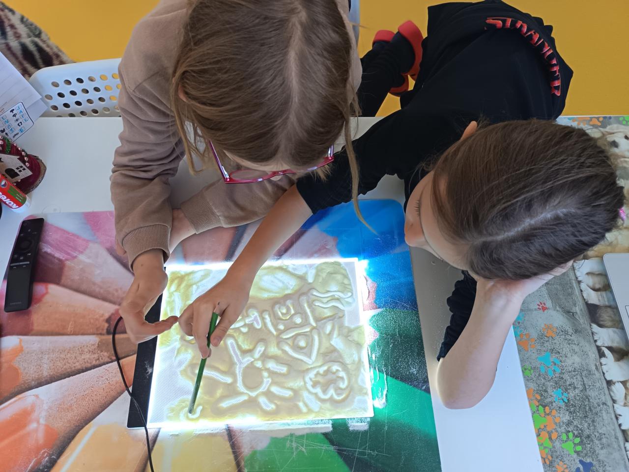 Pondělí jsme začali ,,zimní hrou". Kreslili jsme pískem a moukou na světelnou tabulku. Nechyběl ani pobyt venku a stavba bunkru. Jak venku, tak i uvnitř.
