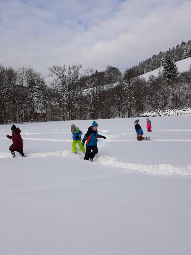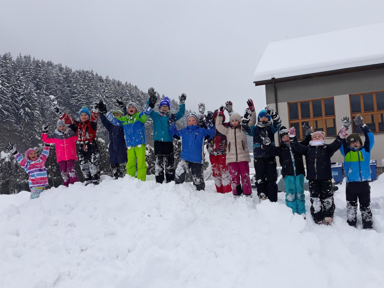 Konečně dorazila ta správná sněhová nadílka a děti si ji užívaly plnými doušky při hodinách TV.