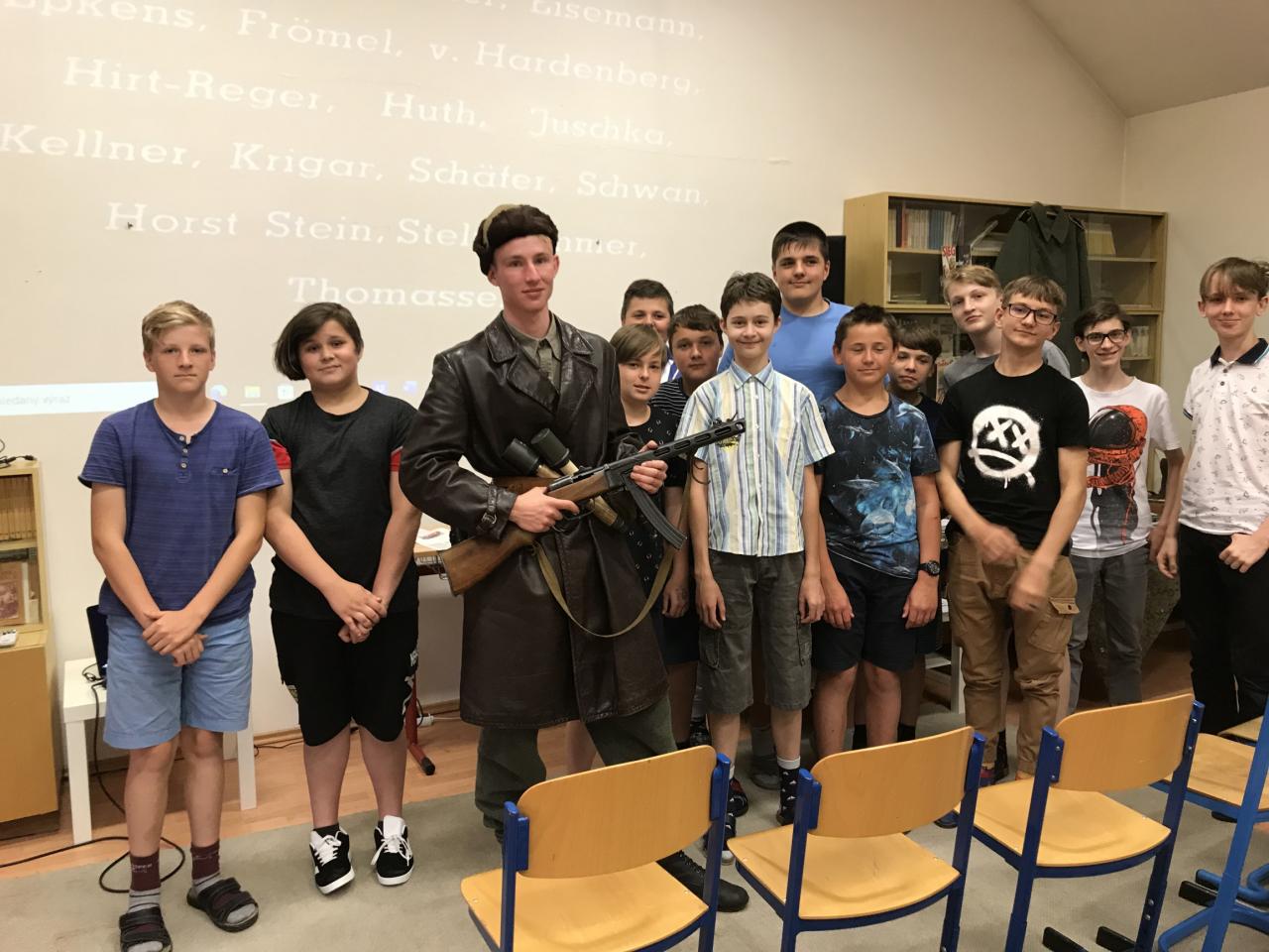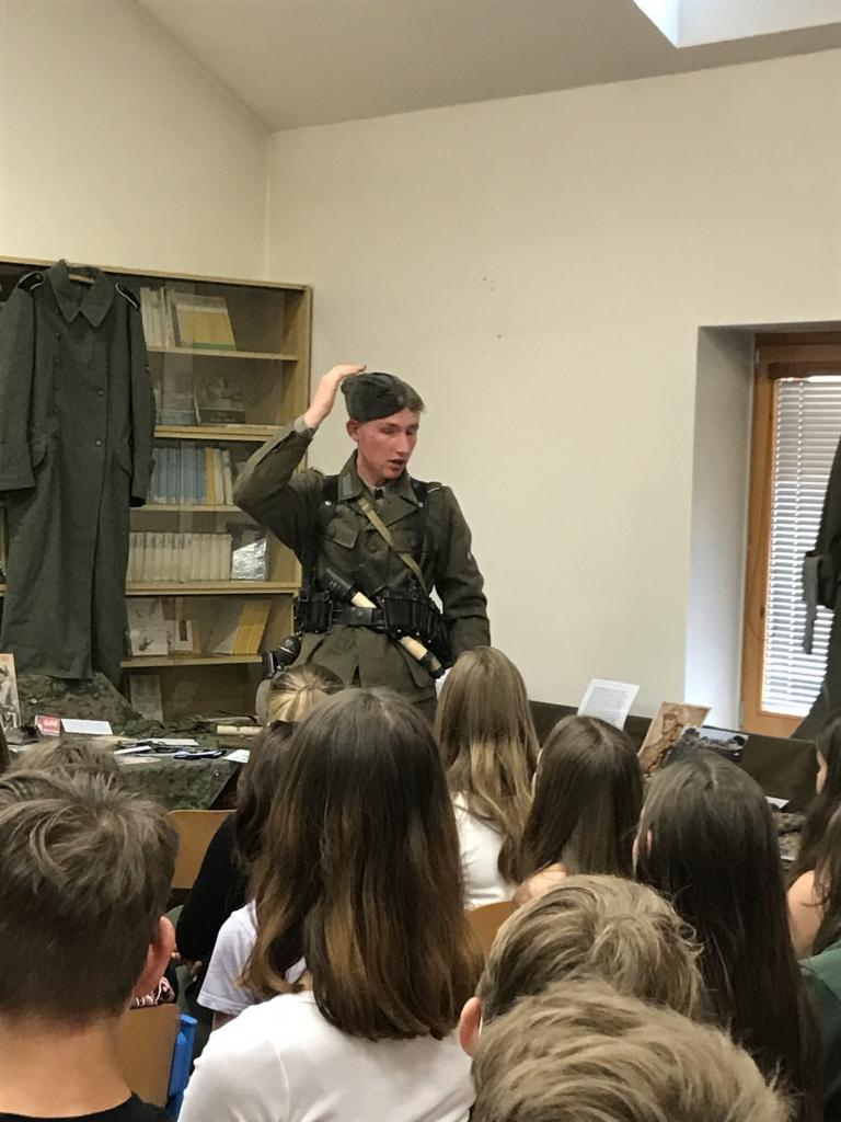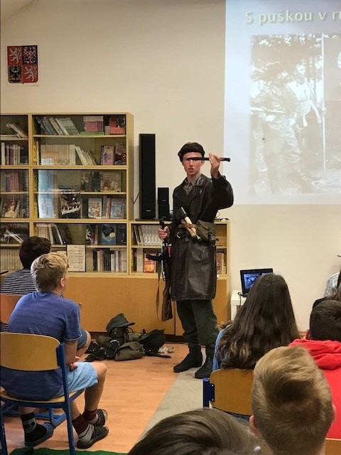 Dne 6.6.2022 nás navštívil náš bývalý žák, Pepík Pavlín, který si pro nás připravil povídání na téma "Hitlerův poslední den". Žáci se seznámili se zajímavou historií, ale také viděli dobové ukázky vojenského oblečení, techniky a především velký zájem bývalého žáka o historii války... Moc děkujeme.